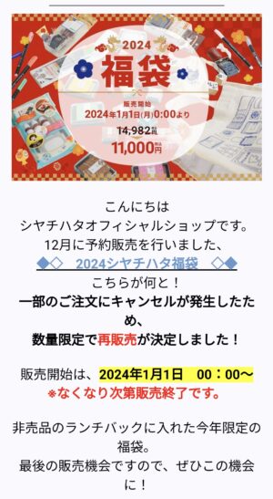 2024年シヤチハタの福袋再販決定!!→終了しました。