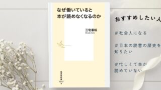 実用書 『なぜ働いていると本がよめなくなるのか』三宅香帆を読み、勇気を出して働かないようにしようと思った なんでこの本を読もうと思ったのかこひめネットニュースでよく見かけたからです。「新書大賞2025」大賞に輝いた本です。中央公論新社が主催する「新書大賞」は、1年間に刊行されたすべての新書から、その年「最高の一冊」を選ぶ賞です。2023年12月... 2026.04.03 実用書自己啓発本