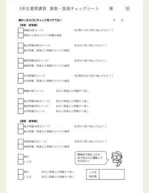 4年生の夏期講習は